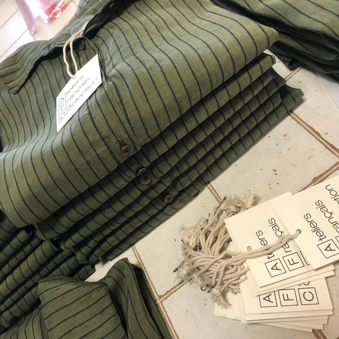 Chaque pièce fait l'objet d'un contrôle qualité rigoureux, suivi d'un repassage soigné, de l'étiquetage et de l'emballage avant son expédition. Ce processus garantit que nos produits arrivent conformes à notre cahier des charges.